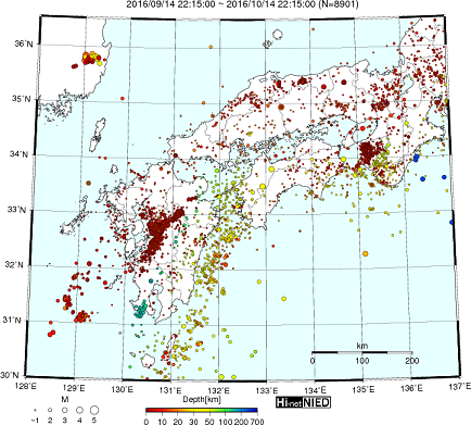 下の図は、ここ一ヶ月の地震の発生状況です。